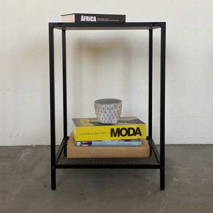 Mesa Lateral Auxiliar Industrial Retrô Quadrada 1 Prateleira Madeira/Aço York