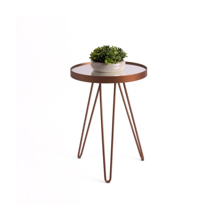 Mesa Lateral Cobre Pés De Ferro Tampo Com Espelho - 60 Cm Altura