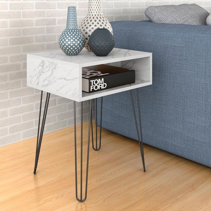 Mesa Lateral Com Nicho Pé Aramado Brooklyn Car/branco - M. Arapongas