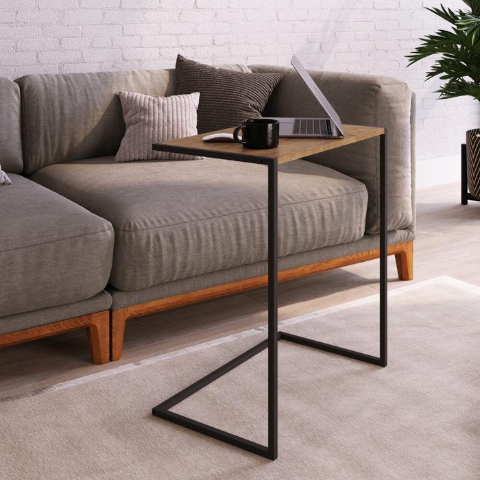 Mesa Lateral de Apoio Industrial - Carvalho/Preto Carvalho/Preto