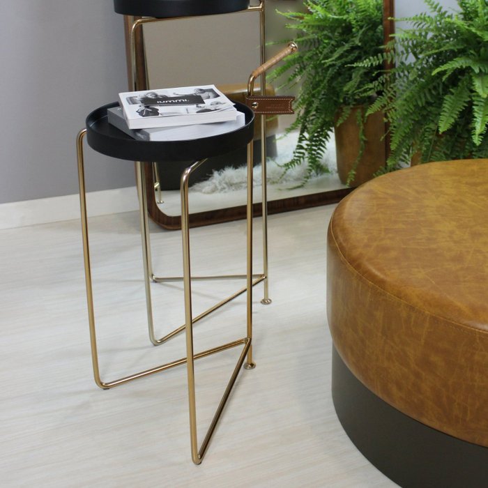 Mesa Lateral de Apoio Tampo Redondo Leon Preto/Dourado