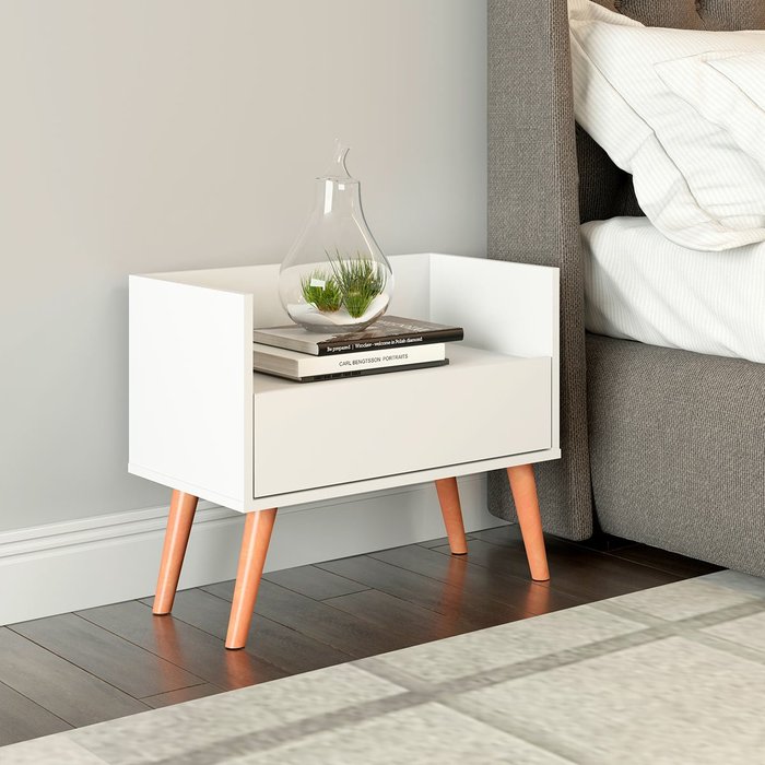 Mesa Lateral de Cabeceira 60 x 53 cm Gaveta Pés Palito Madeira MDP Branco 0659 - MENU Branco