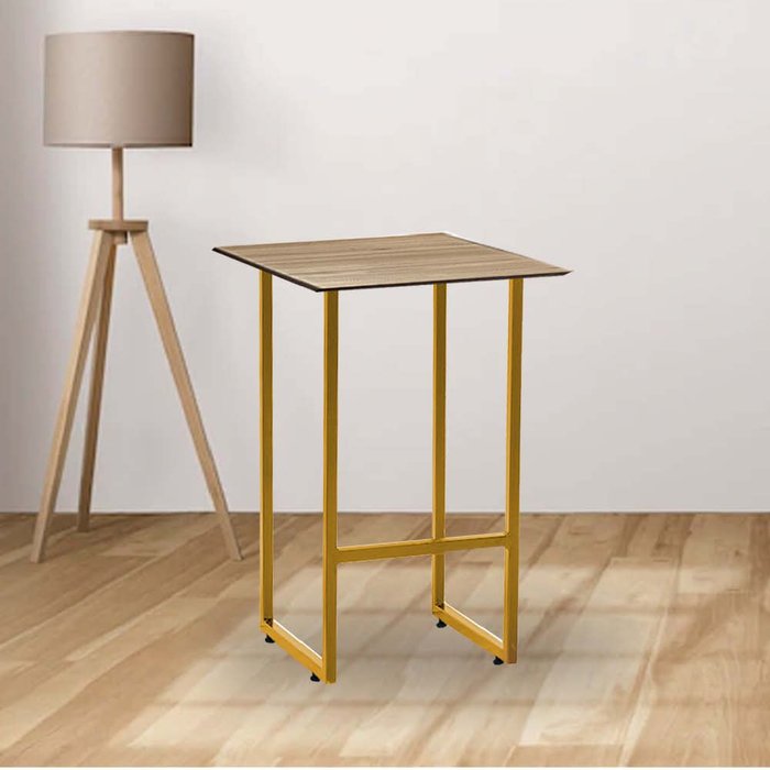 Mesa Lateral de Canto Industrial Will Sala Escritório Ferro Dourado Tampo MDF Quadrado Madeira - Aha