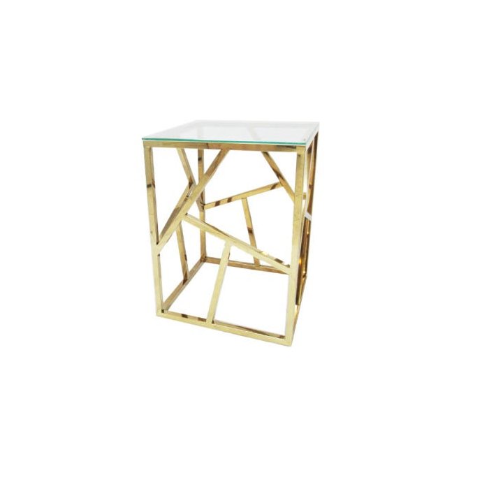 Mesa Lateral Dourada em Aço Inox Com Tampo De Vidro - By Fineza