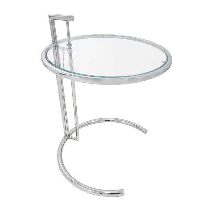 Mesa Lateral e Apoio em Metal Prata e Tampo de Vidro