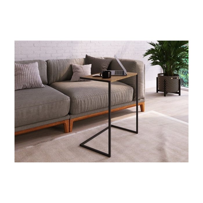 Mesa Lateral Estrutura em Aço 58cm 27886 Steel Quadra Artesano - Vermont/preto Fosco Vermont/preto Fosco