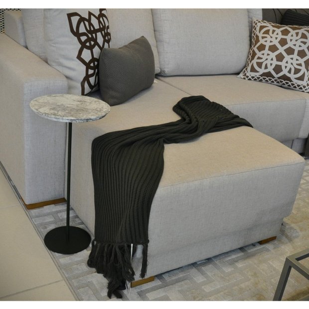Mesa Lateral Norina ALTA 60 cm, tampo redondo 30 cm MDF/Marmorizado Imerso, base Verde Oliva.