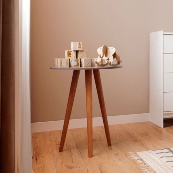Mesa Lateral para Quarto Infantil Olivia Branco/Madeira mel