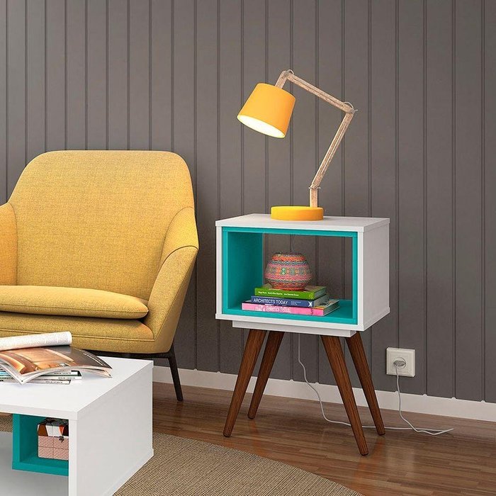 Mesa Lateral Para Sala Branca/turquesa Retrô 40 - Cor: Branco Branco
