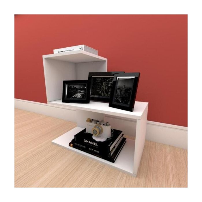 Mesa lateral para sofá formato S simples em mdf Branco