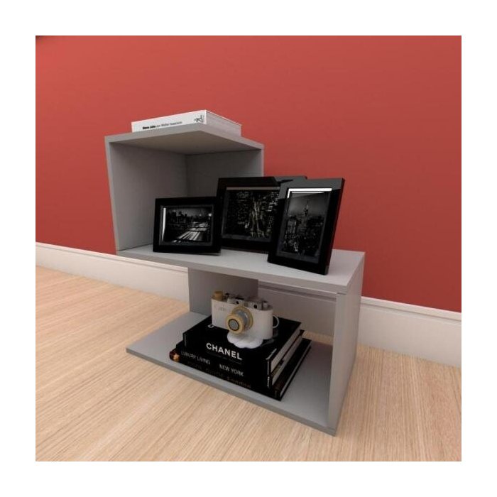 Mesa lateral para sofá formato S simples em mdf Cinza Cinza
