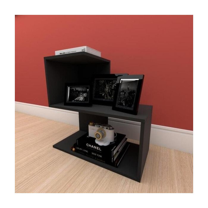 Mesa lateral para sofá formato S simples em mdf Preto Preto