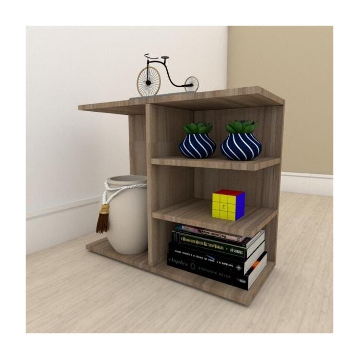 Mesa Lateral para sofá moderna com nicho em mdf Amadeirado