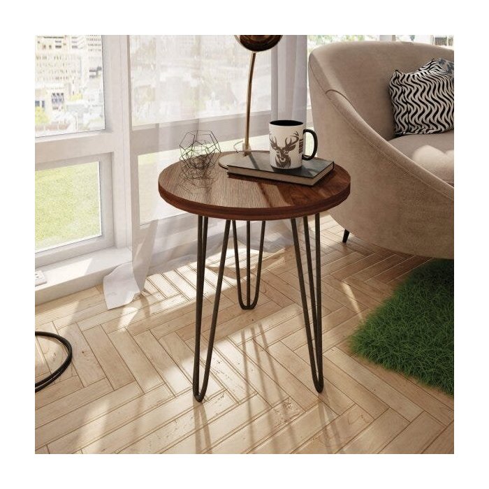 Mesa Lateral Redonda 45cm com Pé de Ferro Líder Design Iron Caemmun Havana