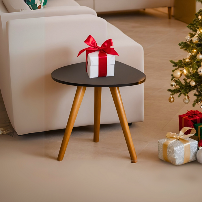 Mesa Lateral Redonda Organica 36x40 Pé Palito Tripé Retrô Canto Sofá Cama Quarto Sala Branca Preta PRETO