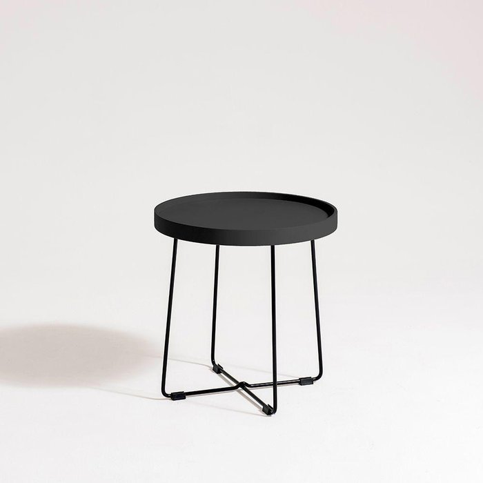 Mesa Lateral Roncalli Coordenada Baixa Redonda Bandeja Aço Carbono Lamina Madeira Elegante