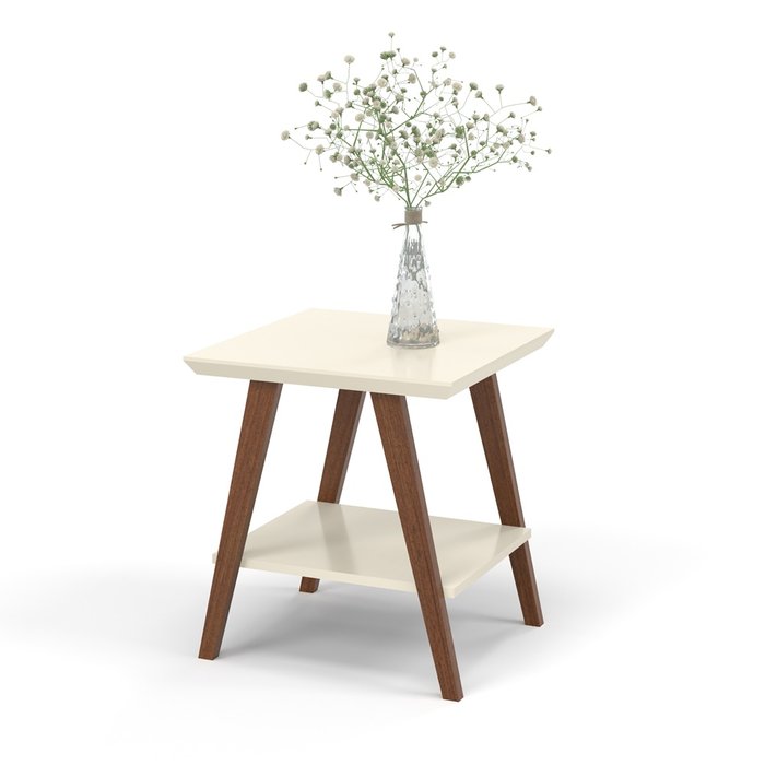 Mesa Lateral Sofá Davi Off White Pés em Madeira - Ofertamo