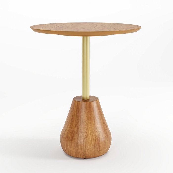 Mesa Lateral Tampo em MDF e Pés em Madeira Maciça Duna Média Champagne/Dourado