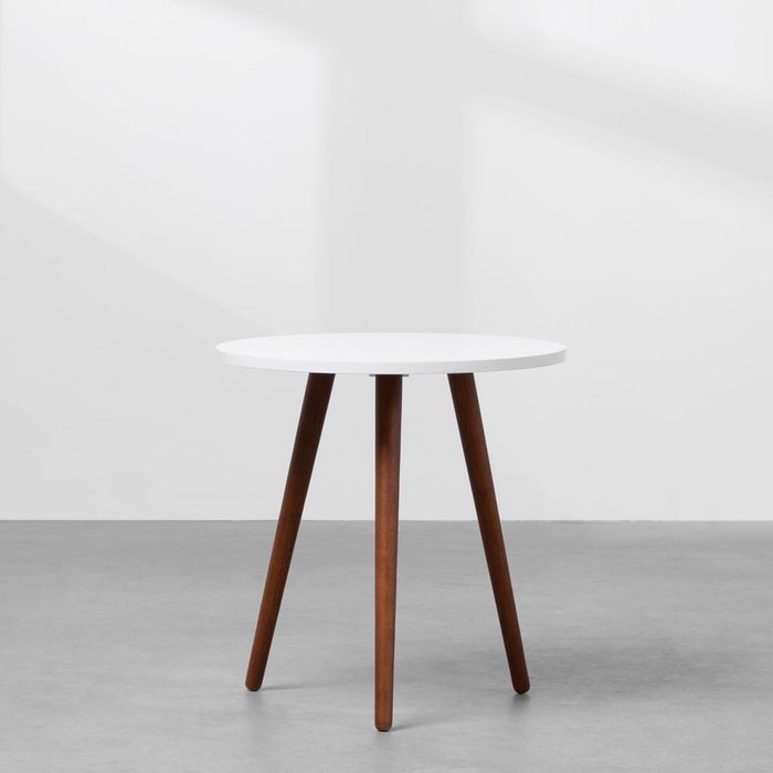 Mesa Lateral Trix Redonda 45cm – Nozes e Branco Renova