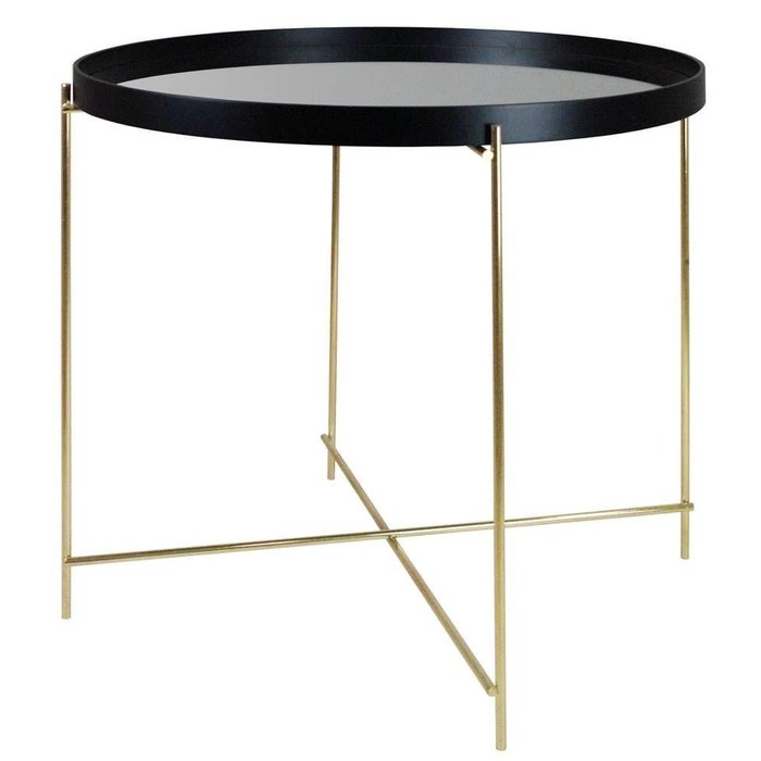 Mesa Lateral Volpi Preta Base Dourado 73cm