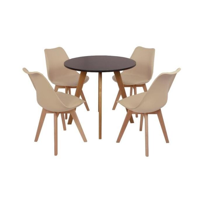 Mesa Laura 80cm Preta + 4 Cadeiras Leda - Nude