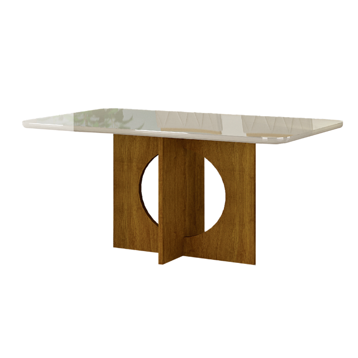 A Mesa Lorena da Leifer tem tampo de madeira com vidro de 4mm serigrafado sobreposto, deixando seu ambiente elegante e confortável. Os produtos da Leifer são produzidos com o que há de melhor em material e acabamento.