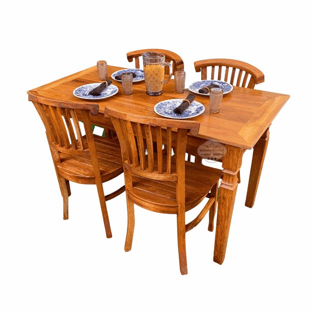 A Mesa Rústica em Madeira De Demolição 140x70cm com 04 Cadeiras Leque da Sudeste Rústico é para você que procura uma peça tradicional e confortável. Altamente resistente e durável, a mesa possui 1,40 m de comprimento e 0,70 cm de largura, acompanha 4 cadeiras com encosto abaulado, gerando ainda mais conforto com sensação de abraçar suas costas. Produzida em madeira de demolição. É perfeita para reunir a familia em áreas gourmet, áreas de churrasco, cozinhas e salas de jantares . Deixe seu ambiente ainda mais bonito e sofisticado com A Mesa e as cadeiras em Madeira de Demolição da Sudeste Rústico.