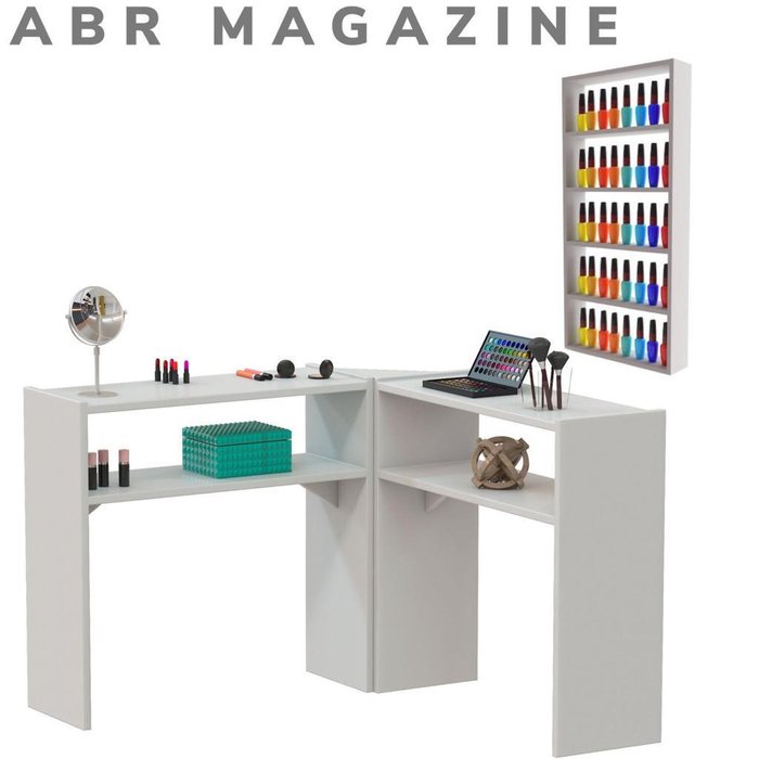 Mesa Manicure em L + Expositor de Esmaltes Branco