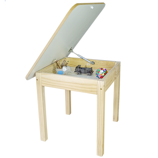 MESA MESINHA COM BAÚ INFANTIL DE MADEIRA: QUADRADA CARTEIRA ORGANIZADORA ESCOLAR RESISTENTE natural e branco
