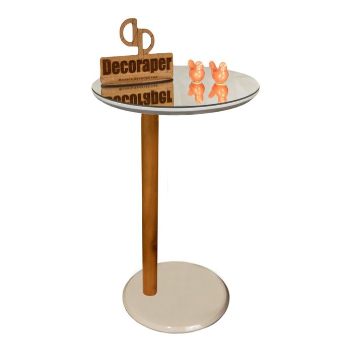 Mesa Monopé De Apoio Para Sofá com Espelho 35X70 Decoraper Off White Mel