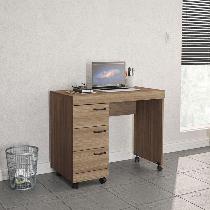 Este móvel geralmente possui uma superfície plana, com uma ou mais gavetas para armazenar materiais de escritório, livros e outros itens essenciais.