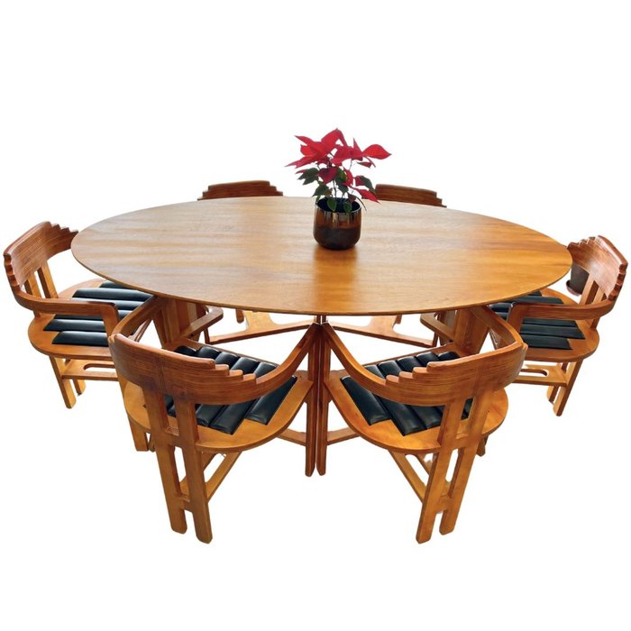 Mesa Oval com 6 Cadeiras Compensado Naval Maciça - Luxo Rustico