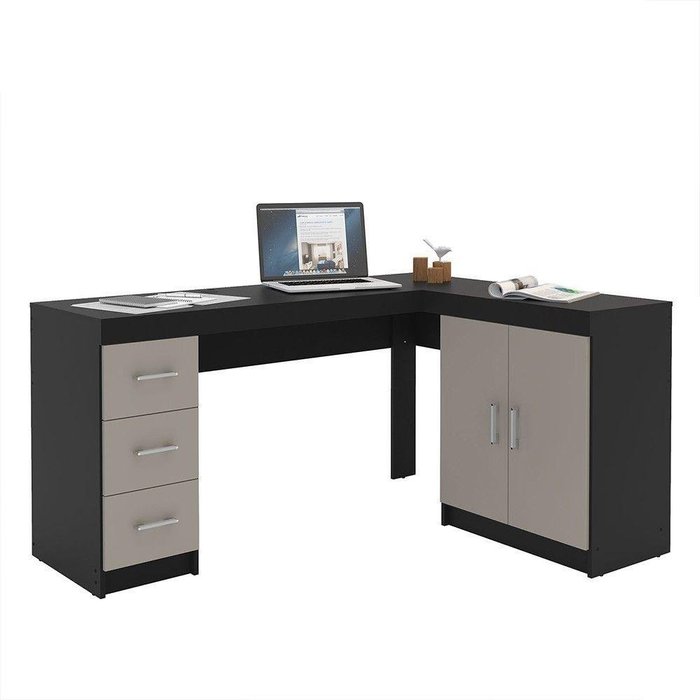 Mesa Para Computador Escrivaninha De Canto Espanha Preto/cinza - Politorno