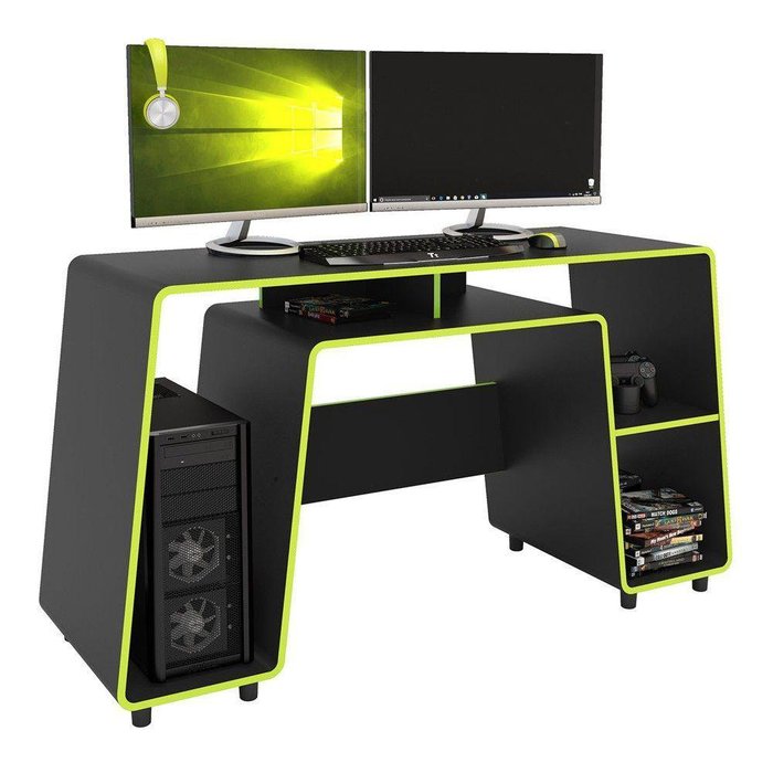 Mesa Para Computador Notebook Desk Game London Preto/verde Neon - Politorno