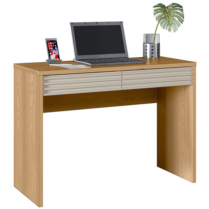Além de resistente, já que conta com tampo engrossado com 25mm, esse item possui um bom espaço interno nas gavetas para guardar os objetos e papéis que precisam estar sempre à mão durante as atividades laborais ou escolares. Sem contar, é claro, que combina com qualquer decoração e você pode montar o seu lar style como sempre quis.