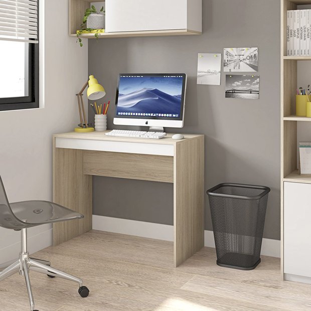 Mesa para Computador Compacta 90cm Recta Caemmun: Bege e Branco Marrom E Preto