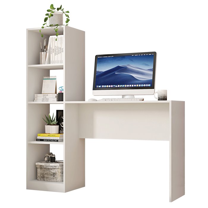 Mesa Para Computador e Estante Para Escritório Tower Caemmun Branco
