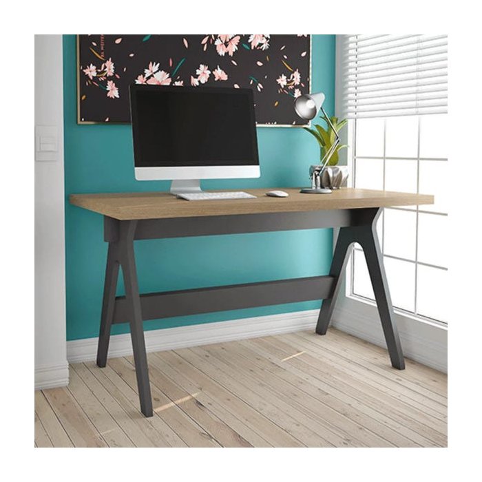 Mesa para Escritório 100% MDF Carvalho/Grafite - Dalla Costa