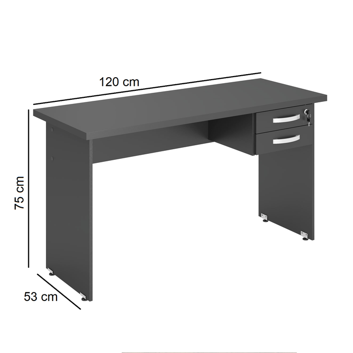 Primeiramente obrigado por nos visitar. Você está prestes a conhecer um produto de qualidade e ótimo custo benefício. Buscamos trazer o que há de melhor no mercado para lhe oferecer, se você esta aqui é porque tem bom gosto e quer deixar seu ambiente agradável e sofisticado. Fazendo com que todos os seus familiares e amigos sintam-se em lugar aconchegante. Produto de design moderno e funcional que atende as necessidades de organização em diversos ambientes. Uso apropriado para instalações de escritórios corporativos, comerciais e residenciais, office e home office. Produzido com materiais de alta qualidade em MDP BP ou EUCAPRINT 15 mm com tampo de 30 mm, acabamento de bordas em ABS de 1 mm e niveladores de altura. COMPOSTO POR: Mesa: 1,20 x 0,53 x 0,75 (cm) (larg. x profd. x alt.) Gaveteiro com 2 gavetas sendo uma delas com chave.
