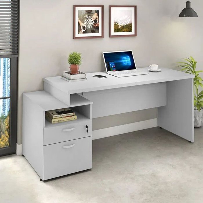 Mesa Para Escritório com Gaveteiro Acoplado 172cm Branca Lilies Móveis