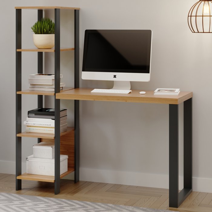 A escrivaninha com prateleira é uma excelente ideia para quem precisa de espaço adicional para organizar materiais de trabalho. Geralmente tem uma ou mais prateleiras, permitindo que você armazene seus materiais de escritório e outros itens essenciais.