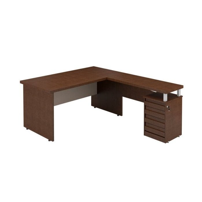 Mesa para Escritório em L 4 Gavetas Ornare Plata Móveis Ruggine/Suede