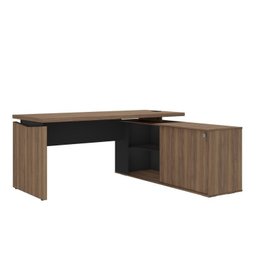 Escrivaninha Mesa Escritório em L Diretor com Armário e 2 Gavetas Nogal/Preto