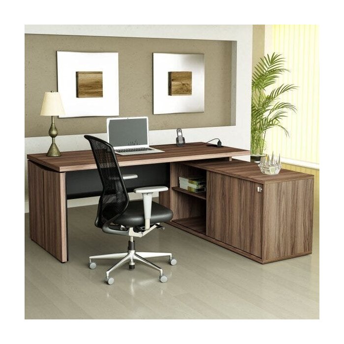 Mesa para Escritório em L Diretor Y37 Artany Nogal/Preto