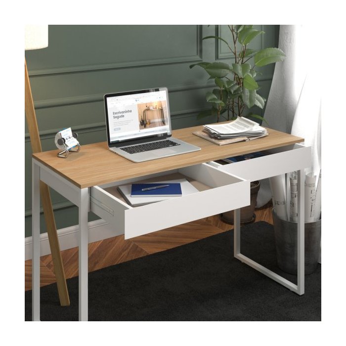 Mesa para Escritório Escrivaninha Golia Lamina com 2 Gavetas Brancas 120x50