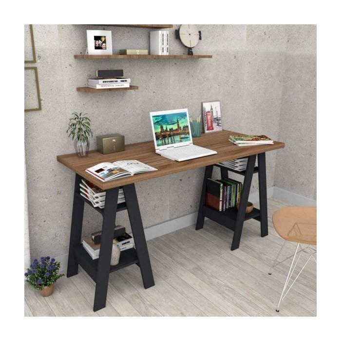 Mesa para Escritório Self Appunto Castanho/Preto Castanho/Preto