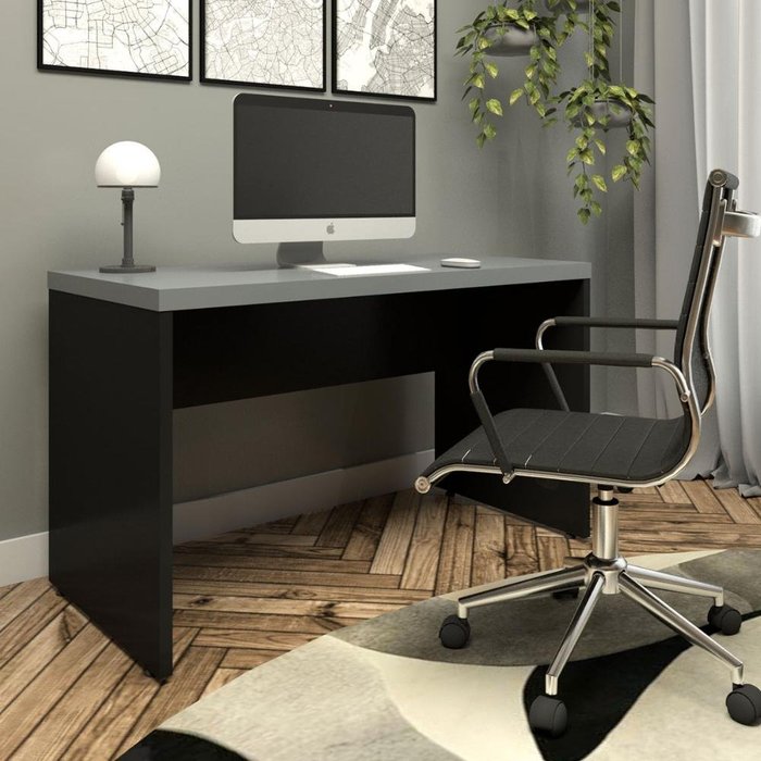 Mesa para Estudos e Escritório Tampo 40mm 120cm Alto Padrão Cinza Sagrado/Preto