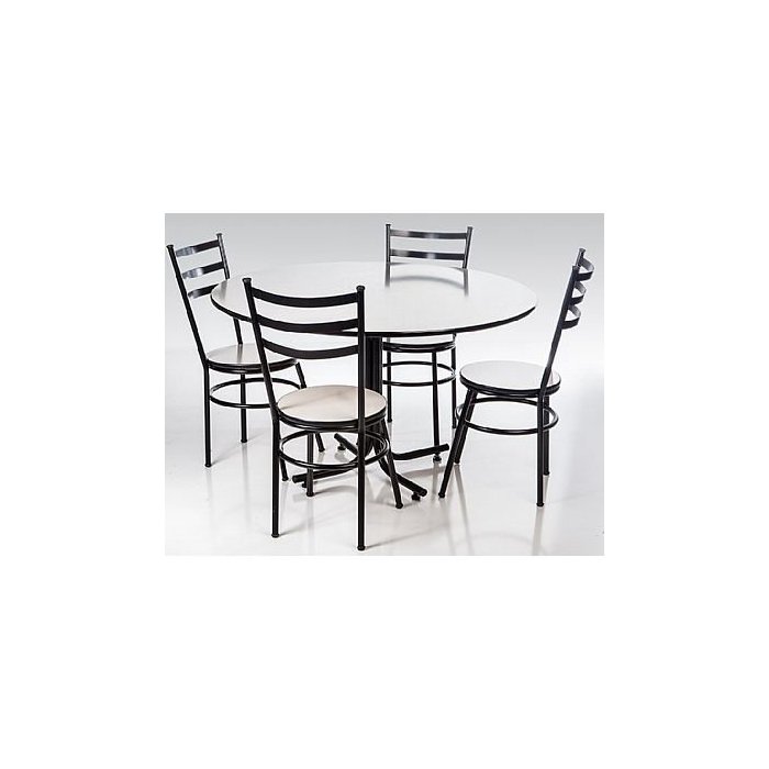 Mesa de lanchonete com 4 cadeiras estofadas .Utilizadas em restaurante, buffet, salas de reunião, sorveteria, refeitório ou indústria .