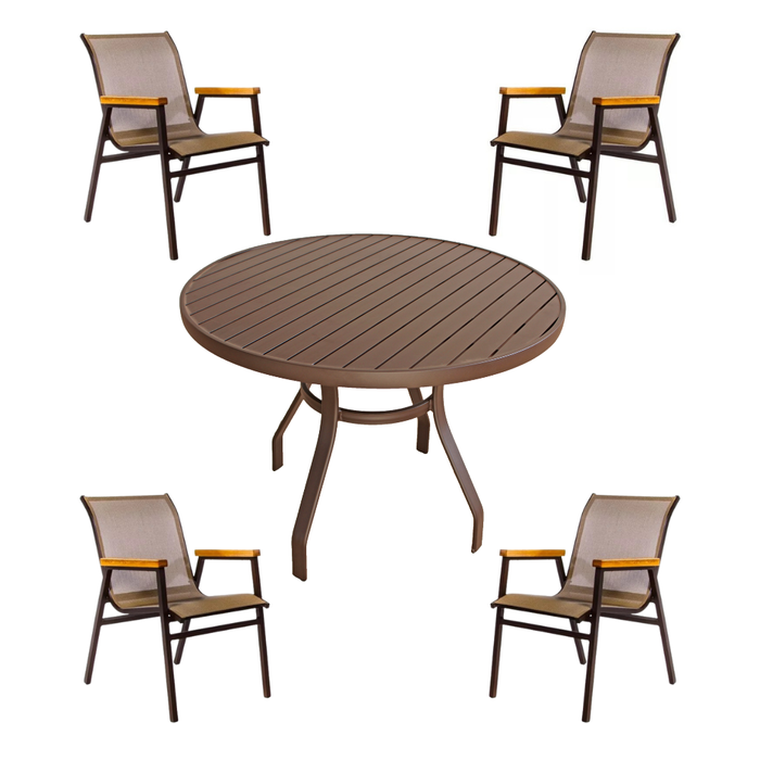Mesa para Piscina com 4 Cadeiras de Alumínio e Tela Sling Resistente a Sol e Chuva
