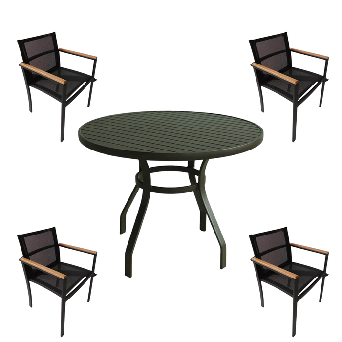 Mesa para Piscina com 4 Cadeiras de Alumínio e Tela Sling Resistente a Sol e Chuva